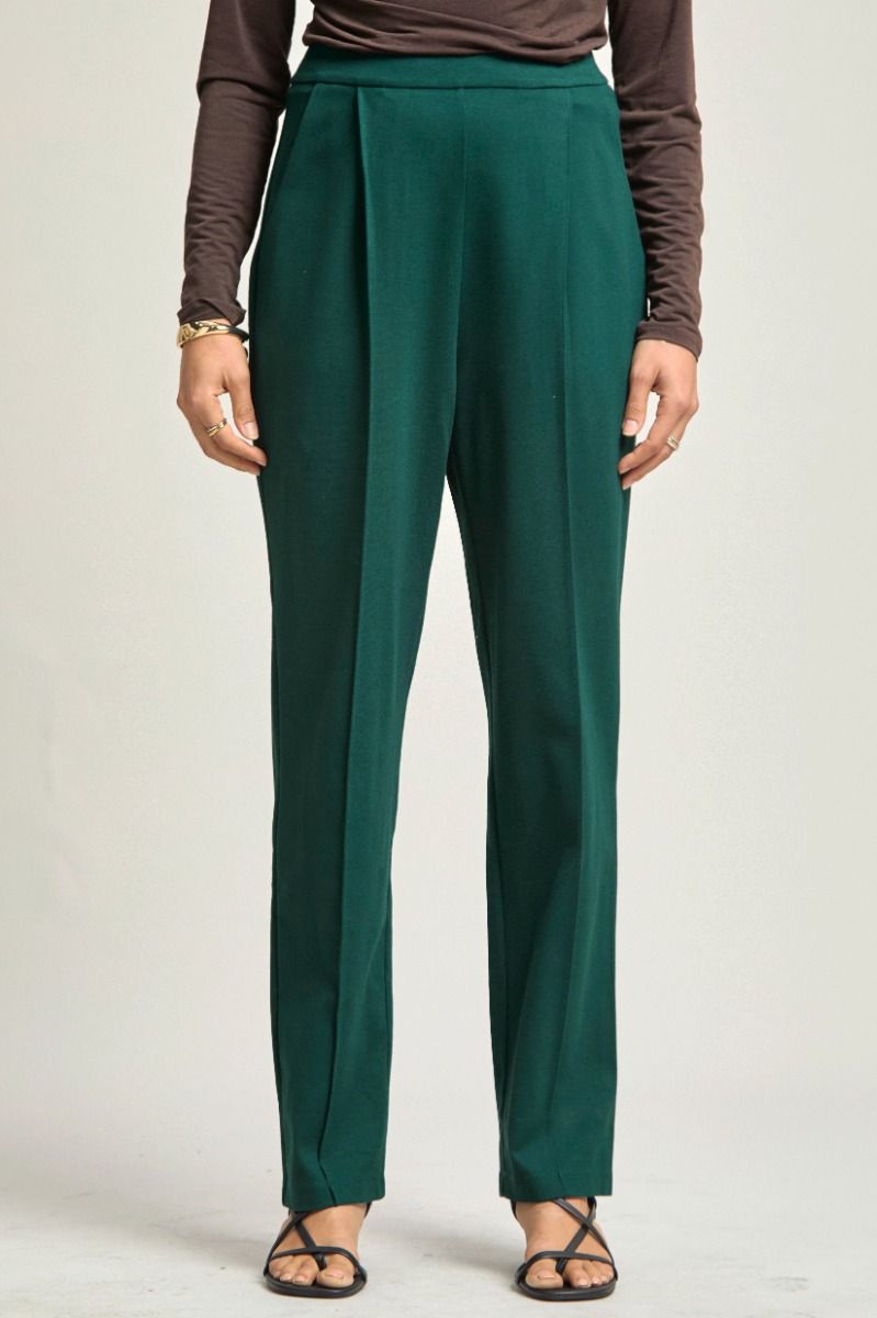 Our new addition to the Magic Collection is here! This barrel leg pants come in our ponte fabric with a high waist elastic and relaxed feel throughout the leg. All you have to do is pull on the pants without a zipper!