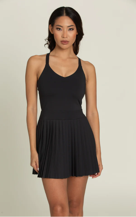 Introducing our Black Y Back Adjustable Pleated Dress that is sure to become a staple in your wardrobe. If you love the look of our Pleated Skirts but prefer an easier "all-in-one" option, then this will be the perfect match for you. Complete with built-in shorts, pockets, and adjustable straps for just the right amount of support, it's a versatile must-have.