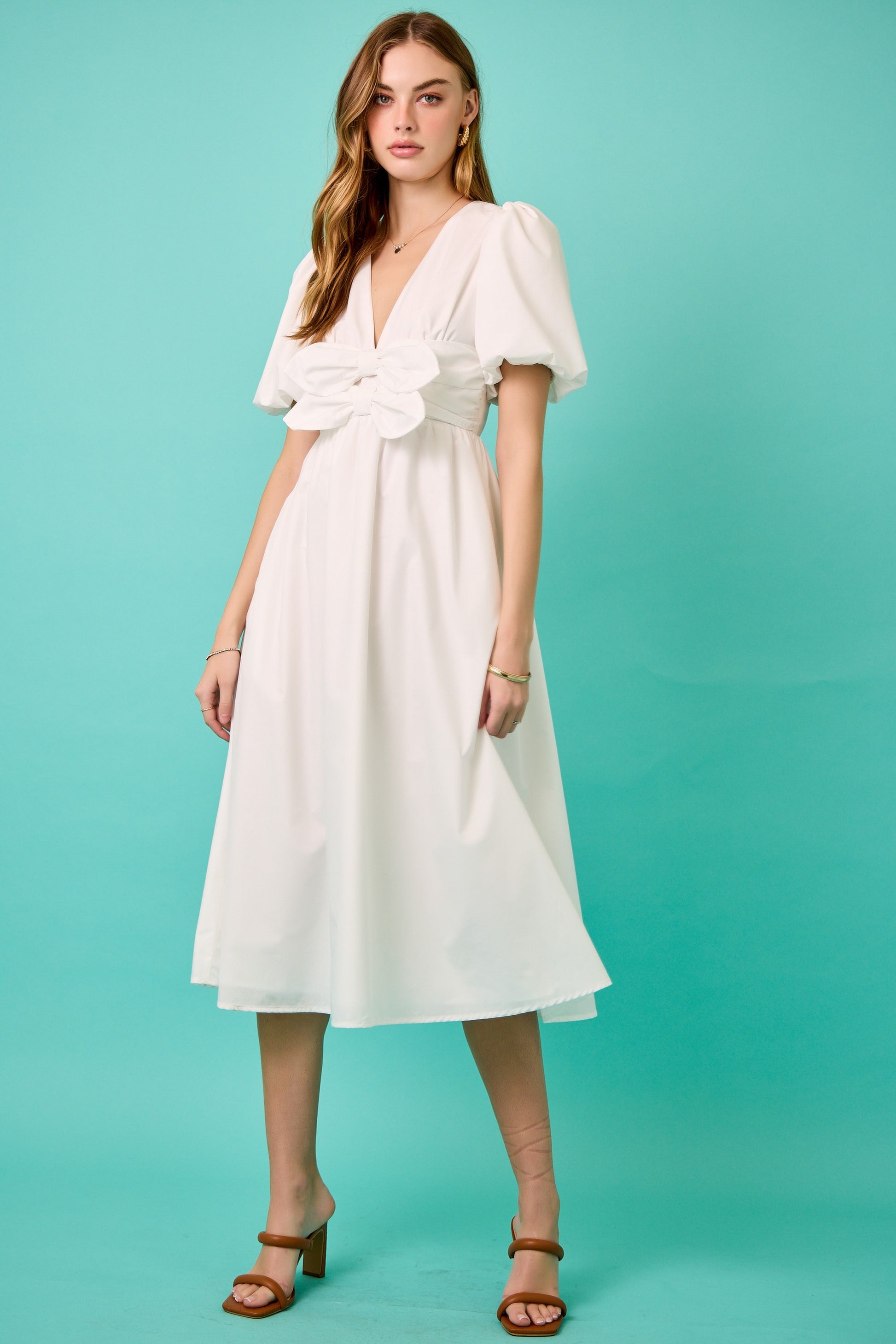 Juniors' Day + Moon Solid Midi W/Bow Detail Dress (Off White)