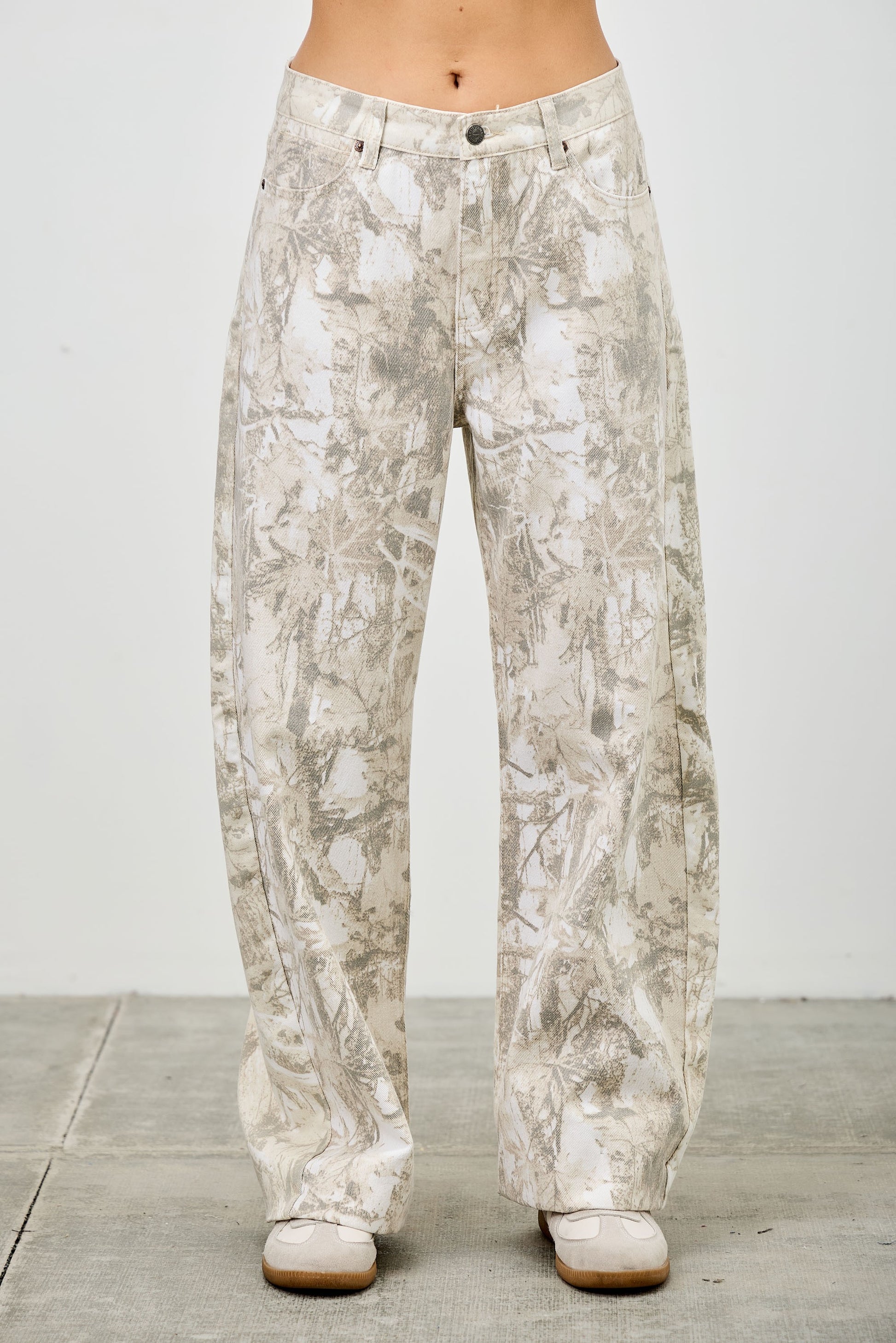 Juniors' Saige High Rise Low Curve Barrel Camo Pants
