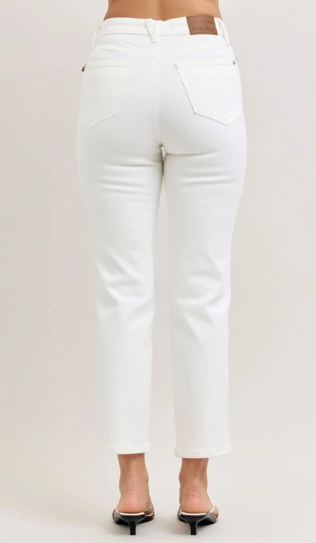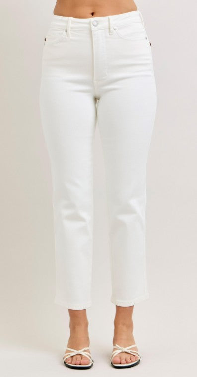 Ladies' Judy Blue High Waist Tummy Control Ankle Straight Denim Jean (White)