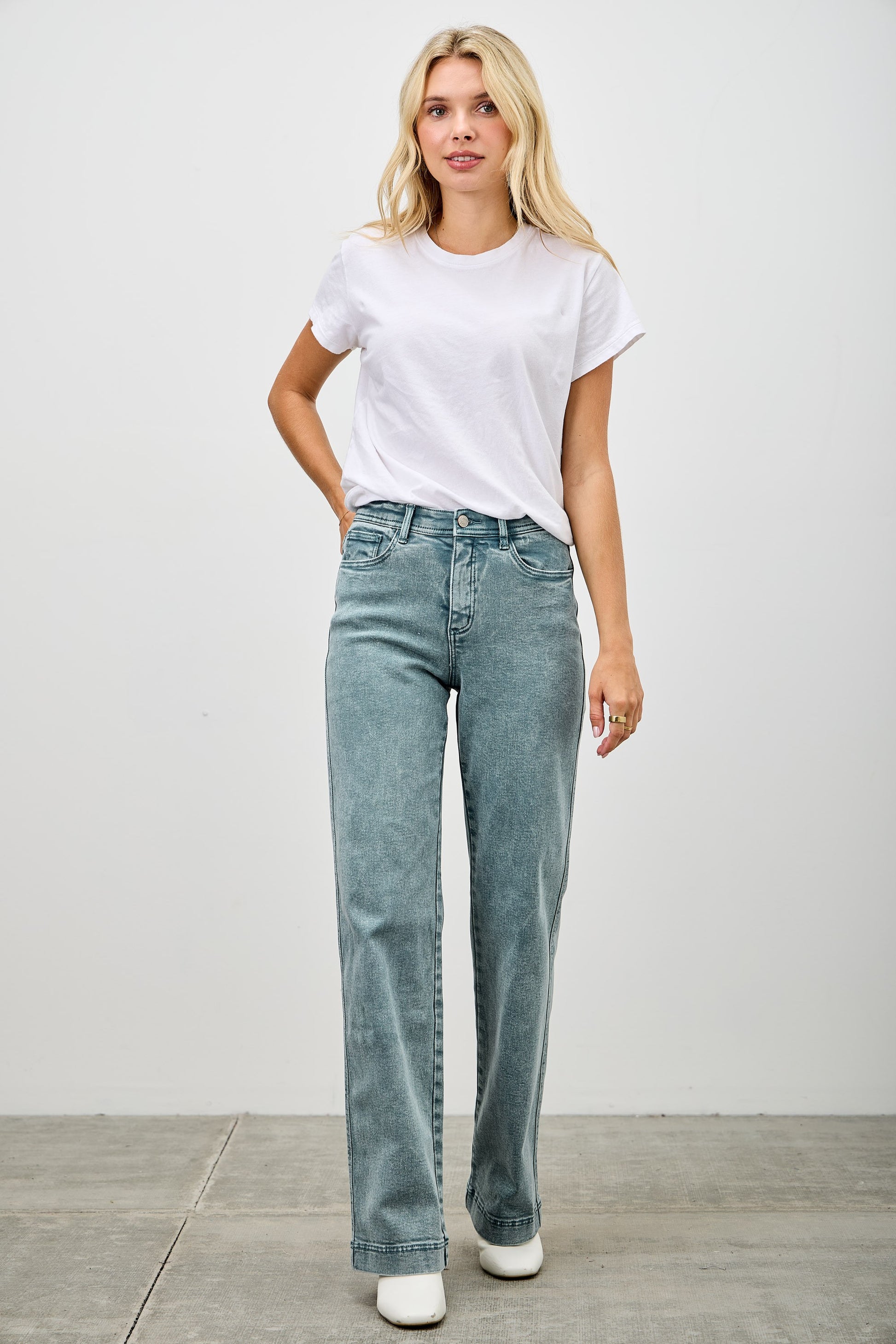 Saige High Rise Slim Wide Straight Jean