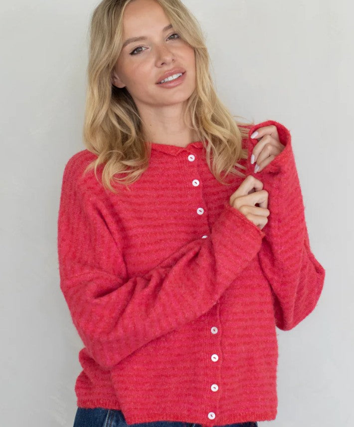 Our super soft and lightweight cardigan with a rolled edge finish and buttons.